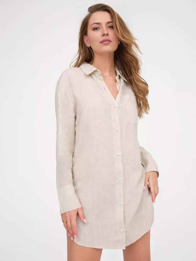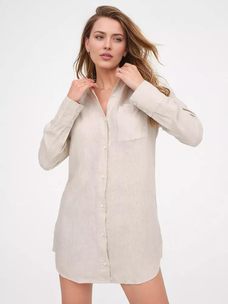 Personlig natskjorte i hør Dameskjortekjole i hør