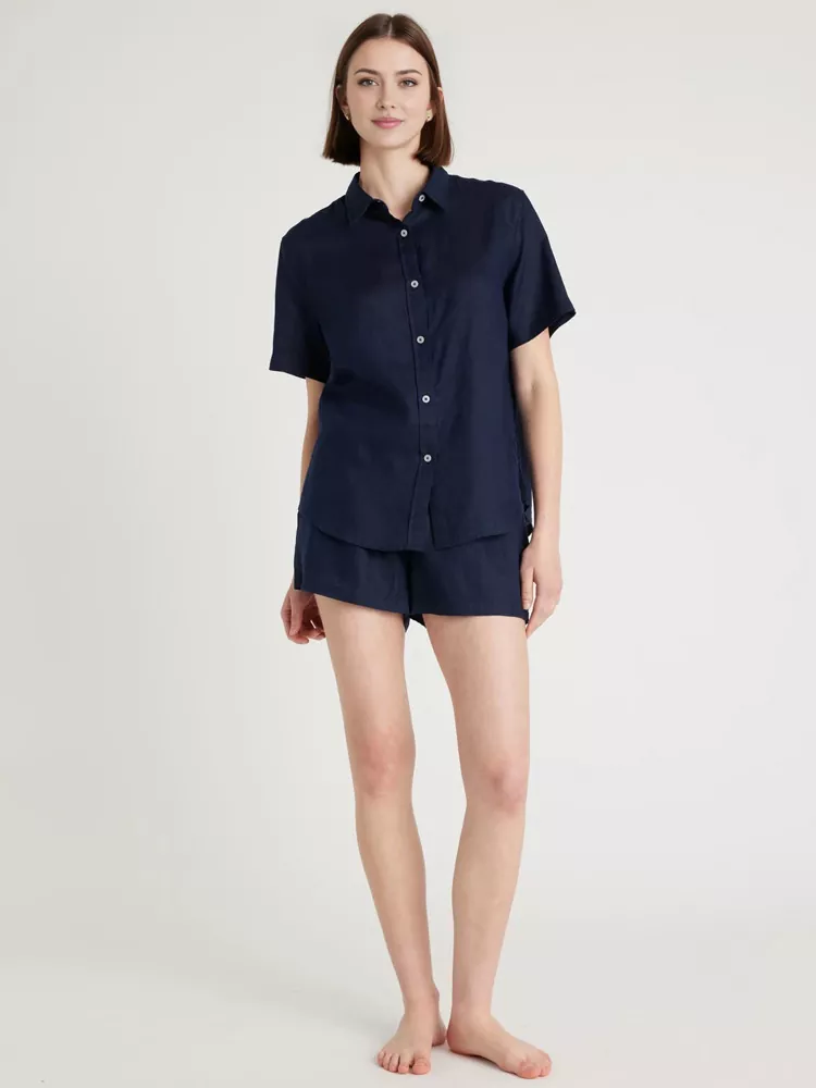 Εξατομικευμένο σετ από λινό σορτς και πουκάμισο για γυναίκες
