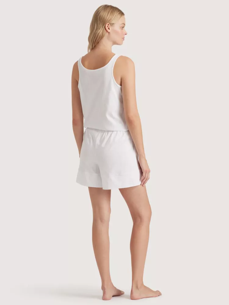 Les éléments de conception de cette ensemble de vêtements d'intérieur blancs se concentrent sur l'aisance et la liberté. L'encolure en U flatte le décolleté et la conception sans manches libère l'espace entre les épaules et les bras, ce qui permet de bouger sans restriction. La coupe ample Ensemble gilet et short Les shorts sont dotés d'une ceinture élastique qui s'adapte à différents tours de taille sans gêne. L'absence de fermetures complexes permet un port rapide, ce qui répond à l'exigence de commodité "instantanée" des vêtements d'intérieur.