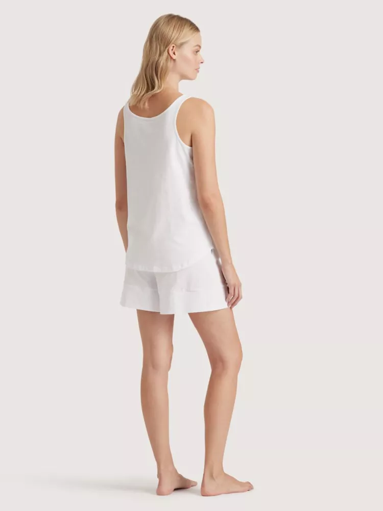 Sur mesure ensemble de gilets féminin ensemble de vêtements d'intérieur blancs est un choix polyvalent pour les entreprises qui s'adressent aux femmes modernes qui privilégient le confort et le minimalisme dans leur tenue de maison. Cette Ensemble gilet et short combine fonctionnalité et design élégant, ce qui le rend idéal pour l'été ou les environnements chauds - il sert à la fois de vêtement de nuit et de vêtement d'intérieur. vêtements d'intérieur décontractés. Son esthétique blanc pur s'aligne sur les tendances minimalistes, séduisant les clients qui apprécient les styles propres et épurés qui peuvent également être associés à des couches extérieures telles que des cardigans pour les courses rapides.