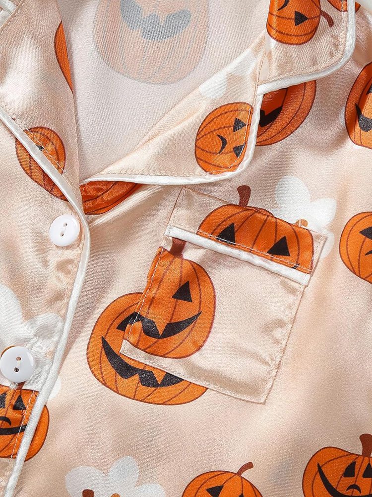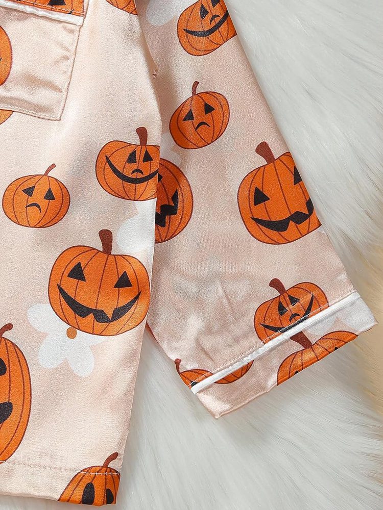 The highlight of these pajamas is their cute and colorful pumpkin print, perfect for kids who love to get into the holiday spirit. The festive and fun Halloween theme is sure to make bedtime more exciting, turning dreams into adventures in haunted houses and pumpkin patches. Plus, the perfect fit for toddlers ensures they can enjoy the holiday in style and comfort, making these pajamas a favorite for both parents and kids.