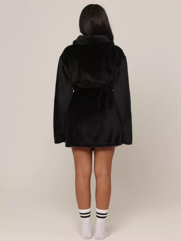 Custom womens flannel robe short black robe